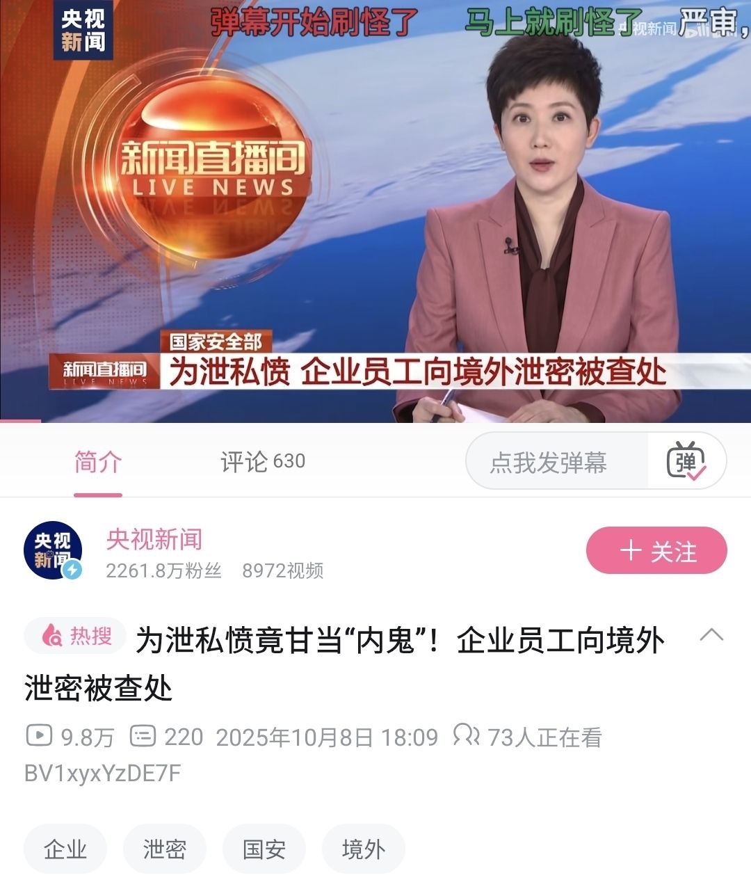 疑似针对近期轰轰烈烈,包括有自称央视中层参与的 #大自爆运动 ,10月8日,央视发布新闻,称国安查处了向境外泄密的企业员工,威胁警告⚠意味浓厚!