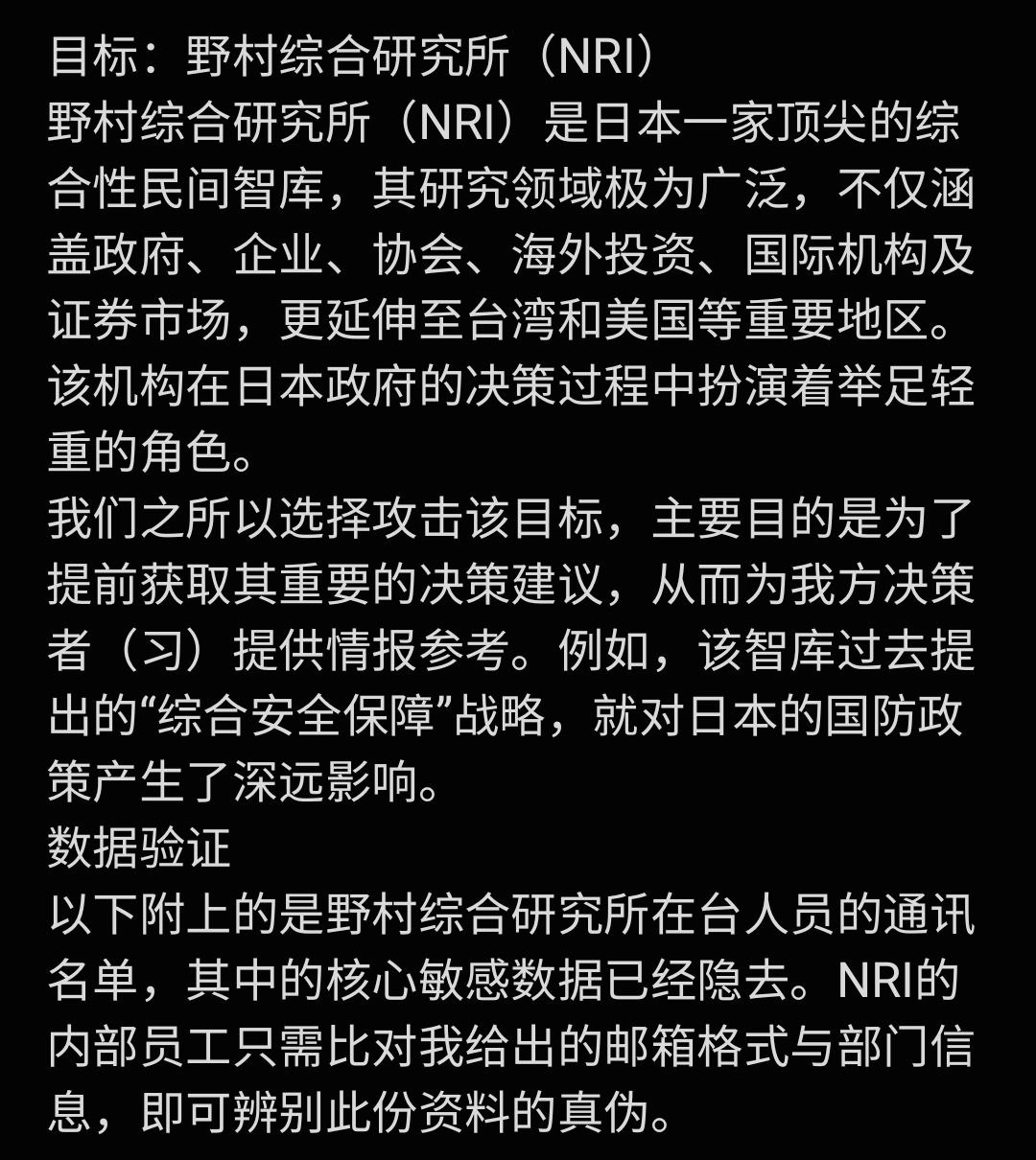 #大自爆运动 关于天津安全局对日网络攻击的爆料 第三期 我们已成功对日本的多个目标实施了黑客攻击。 接下来,我将披露在渗透过程中获取的部分内部数据。我坚持用数据说话,并将在未来持续曝光更多内幕,包括其他攻击目标、相关数据、具体地址、工作人员信息、腐败问题以及部门负责人等详细情况。 【天津国安吹哨人爆料】 第一期: https://t.me/XueXi_China/95071 第二期:https://t.me/XueXi_China/95180